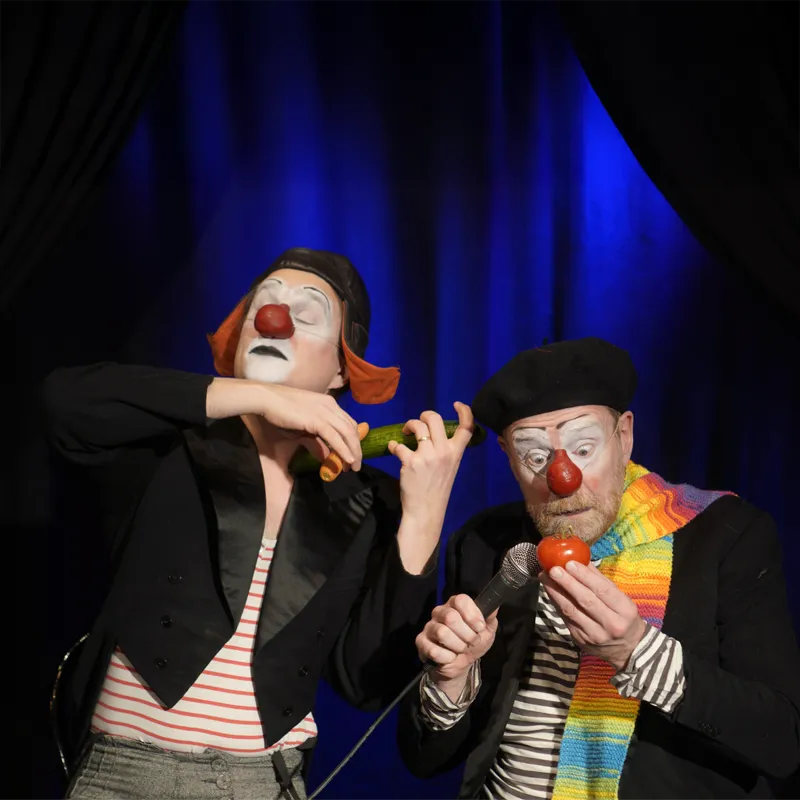 Två clowner ska ha en konsert, men var är instrumenten? Allt som finns är två kassar med frukt och grönsaker! I ett intimt möte med publiken utforskas ljud och musik. Hur låter en tomat? Kan en gurka bli en fiol? Eller en broccoli en trumma? Barnen får först följa clownernas utforskande av ljud och klanger, men bjuds successivt in mer och mer tills gränsen mellan scen och salong suddas ut och alla skapar musik tillsammans. Clownerna följer barnens energi och känslor vilket gör varje föreställning till en helt unik upplevelse. ”Hur låter en tomat?” handlar om lusten att leka och upptäcka musik. Om du ger barn ett papper och penna förväntar vi oss ett virrvarr av sträck och färger. Men ger vi dem ett instrument förväntar vi oss melodier, rytmik, precision. Den här föreställningen med inkluderad workshop låter barnen närma sig musiken på ett lekfullt och ”fritt” vis. En föreställning som utgår från barnets glädje att undersöka, skapa och se en verklighet där gränserna mellan föremål och deras funktion är flytande. Tillsammans ”kladdar” vi med musik, och på så sätt ges alla en möjlighet att delta i ett konstnärligt skapande oberoende av motorisk funktion och språkkunskaper.